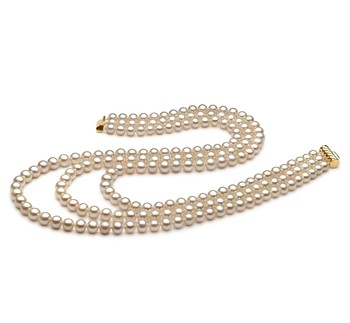 Here are our suggestions: the 30 inches white pearl necklace, the white double strand pearl necklace.